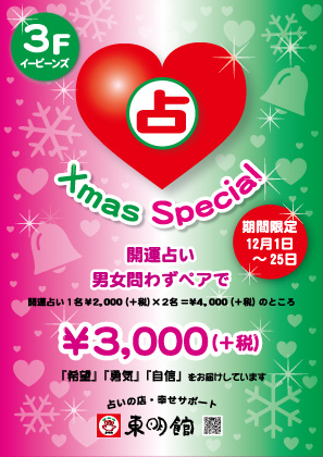 通常2名様合算で¥4,000(+税)の開運占いを、¥3,000(+税)とお得な料金で鑑定いたします。